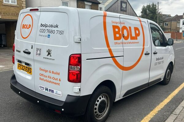 Vehicle livery designed, printed and installed by our team for Bolp. What VEHICLE LIVERY Whose BOLP When 2025 Time taken 3 HOURS Original colour WHITE Back