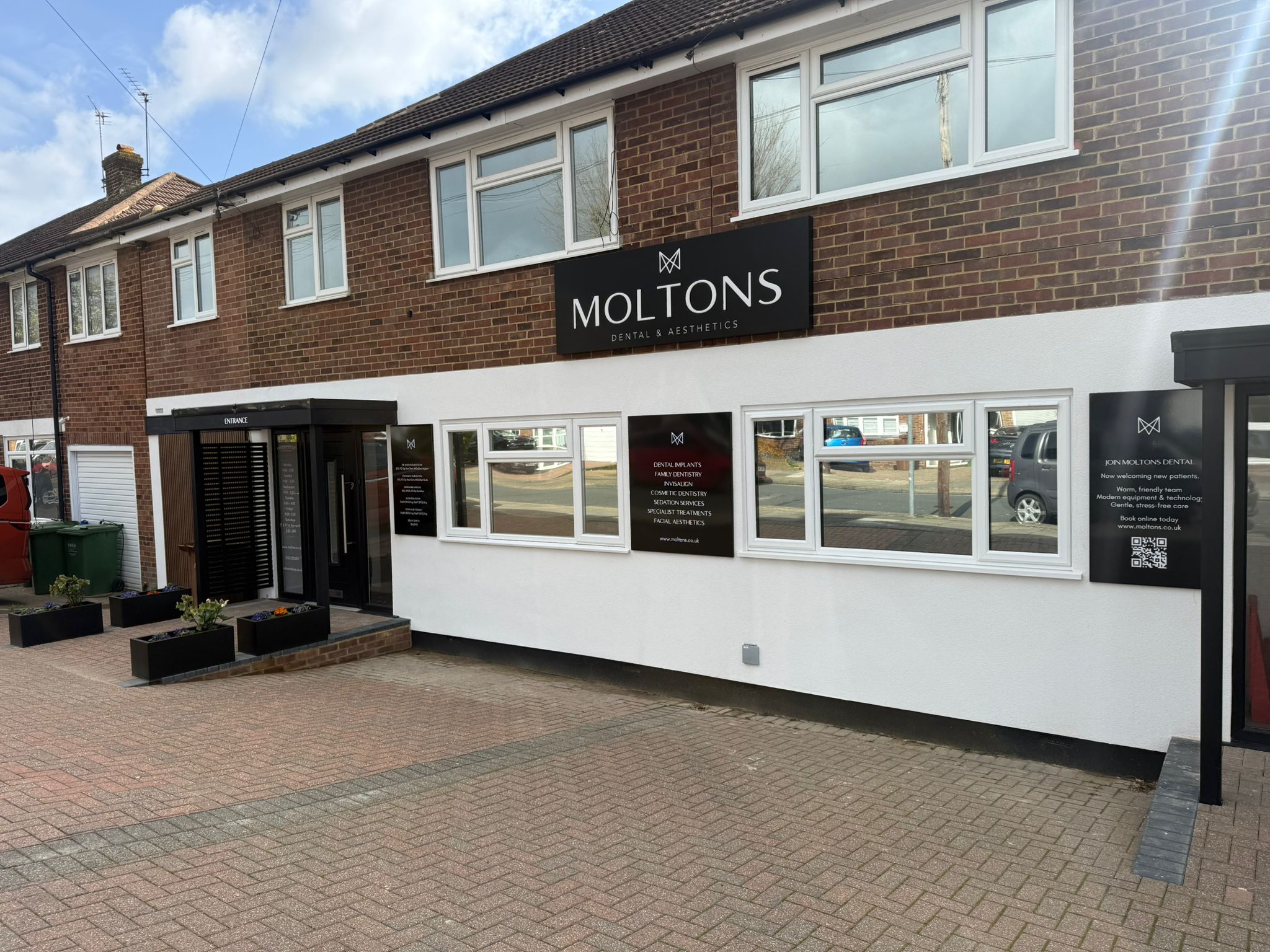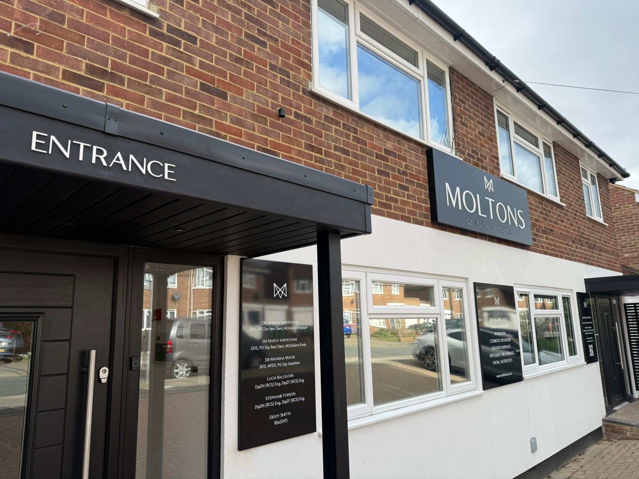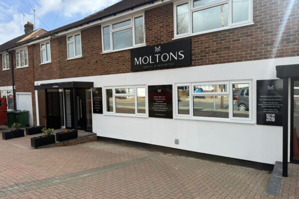 Exterior signage manufactured and installed for Moltons. What SIGNAGE & DISPLAY Whose MOLTONS DENTAL When 2026 Time taken 2 HOURS Original colour NONE Back