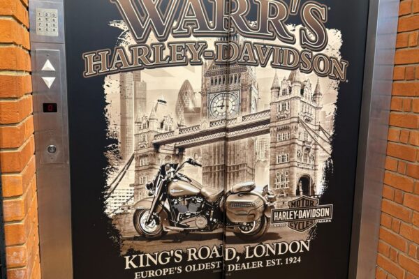 Door wrap for Warr’s Harley Davidson What DOOR WRAP Whose WARR’S When 2026 Time taken 2 HOURS Original colour NONE Back